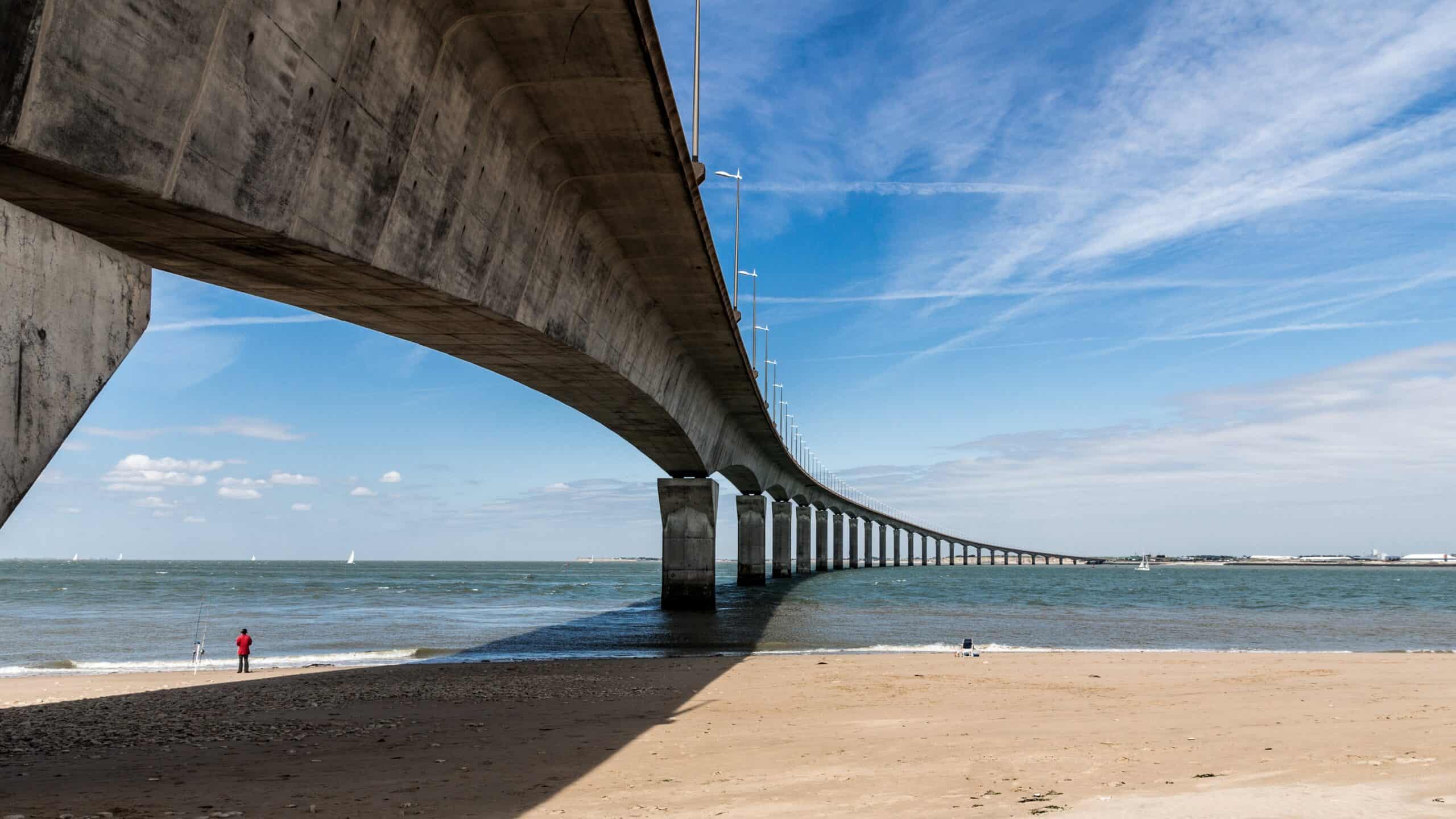 The Ile-de-Ré Viaduct in France experienced in 2018 a failure on one of its external prestressing tendons. The bridge owner awarded to Sixense and Freyssinet the mission to secure the structure, inspect ultrasonically the existing tendons, monitoring acoustically their potential failure and replace the broken tendon.