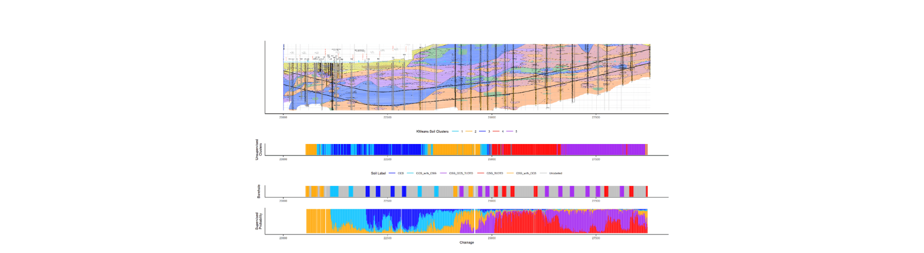 The outcomes of the 1st stage research show that TBM data can be used to characterize the geology along the tunnel alignment using both supervised and unsupervised learning algorithms. The research is approaching its second stage, which connects the underground (TBM) data with the aboveground (ground surface and structures monitoring) data, expecting more collaborative research work from the Sixense team. It is expected that the proposed system may improve the tunneling reliability, risk profile, and safety, and eventually reduce the cost of tunneling. Furthermore, it is envisioned that the proposed system will advance the development of autonomous TBM technology.
